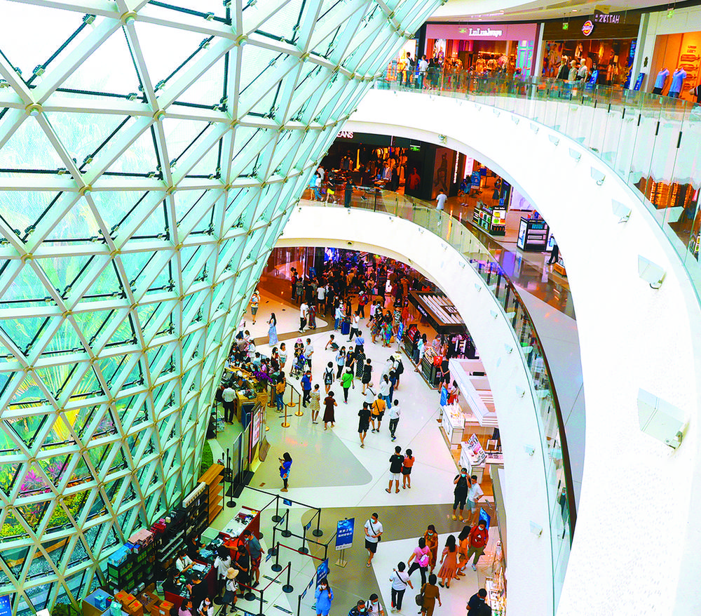▶三亚国际免税城人流如织,消费者购物热情高涨。据海关统计,2021年全年共监管离岛旅客免税购物金额361.1亿元,同比增74.8%,占全省离岛免税总销售额逾七成。 刘琪成摄(中经视觉)