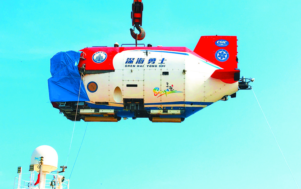 ▲“深海勇士”号载人潜水器从中科院深海所转运至三亚崖州湾科技城南山港码头吊装上船,与中科院“探索一号”船一起从南山港码头出发执行科考任务。 陈聪聪摄(中经视觉)