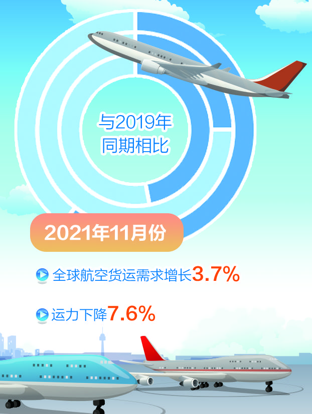 本报日内瓦讯(记者杨海泉)1月11日,国际航空运输协会(IATA)发布全球航空货运定期报告显示,受供应链中断和运力限制等因素影响,2021年11月份全球航空货运需求增长放缓。