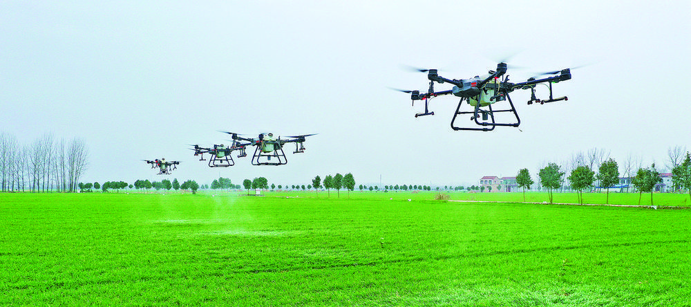 1月15日,河南省周口市高寺镇麦田里,高效便捷的农药喷洒无人机正在作业。当地抢抓冬小麦管理关键期,加大技术指导,加强麦田管理,为小麦丰产丰收奠定基础。任新军摄(中经视觉)