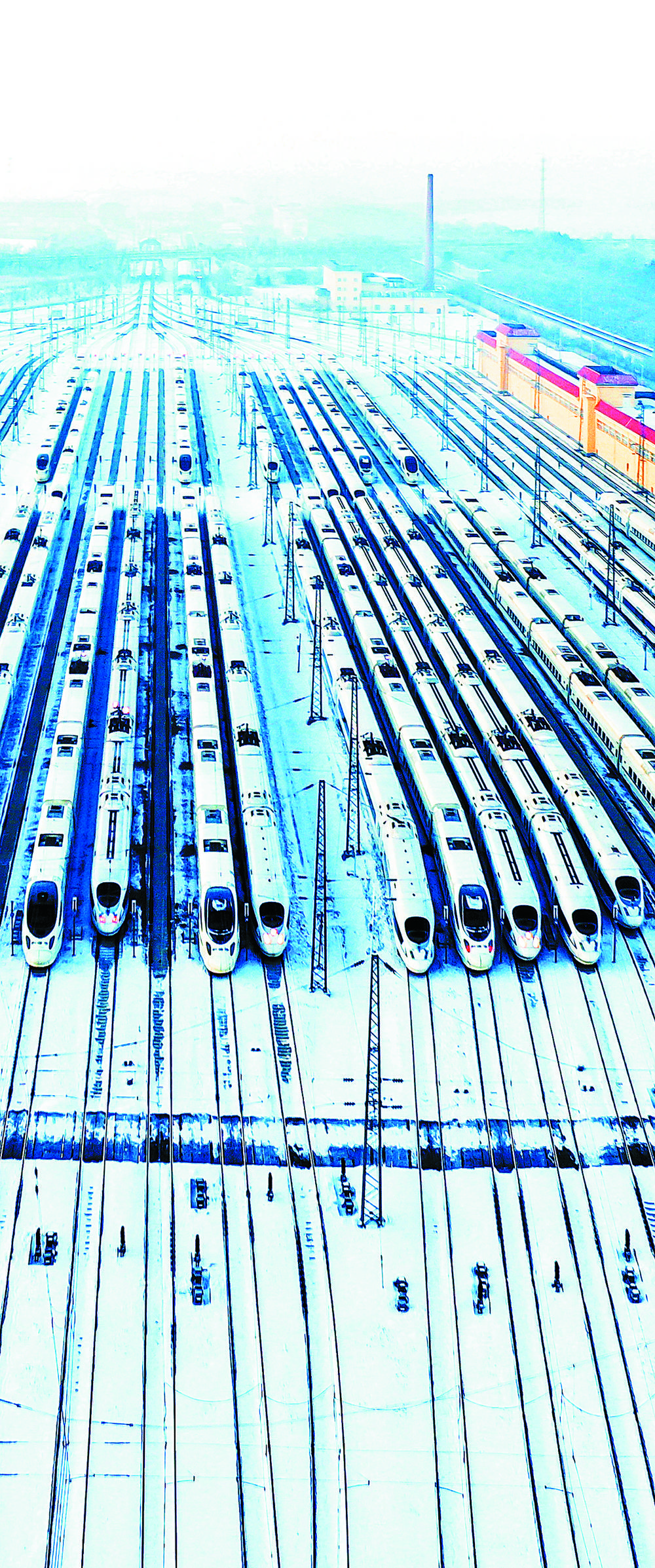 1月17日,春运首日,中国铁路哈尔滨局集团有限公司,哈尔滨动车段值乘的高铁列车整装待发。该公司建立春运保障协调机制,确保春运安全稳定运行。原 勇摄(中经视觉)