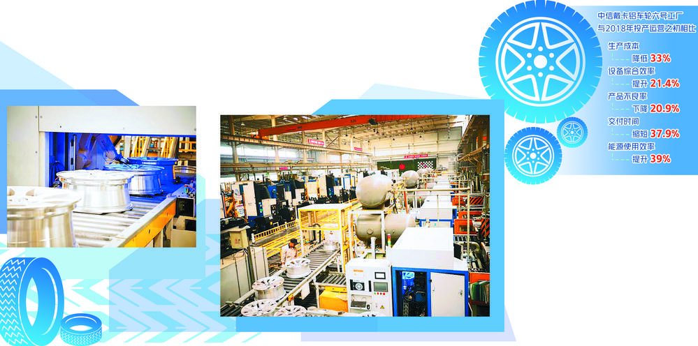 在铝车轮六号工厂,中信戴卡打造了轮毂柔性、闭环的“智造”能力,实现了整个制造过程的质量管理,在实现智能制造的同时,环境、过程、产品多方面水平行业领先。与2018年投产运营之初相比,中信戴卡铝车轮六号工厂实现了生产成本降低33%、设备综合效率提升21.4%、产品不良率下降20.9%、交付时间缩短37.9%、能源使用效率提升39%。