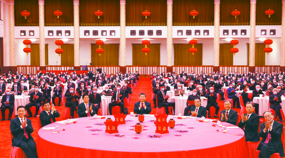 党和国家领导人李克强、栗战书、汪洋、王沪宁、赵乐际、韩正、王岐山等出席团拜会,李克强主持。