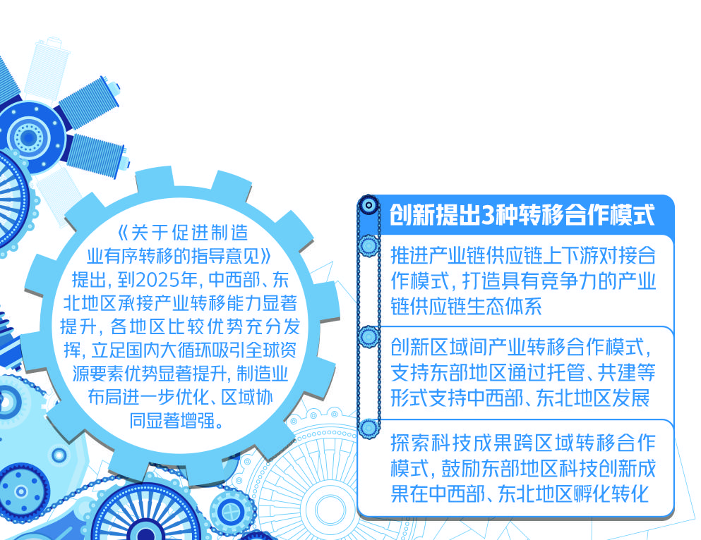 前不久,工业和信息化部等10部门联合出台了《关于促进制造业有序转移的指导意见》。这既是优化生产力空间布局、推动区域协调发展、拓展制造业发展新空间的重要途径,也是保持产业链供应链稳定、维护我国产业体系完整性的迫切需要。