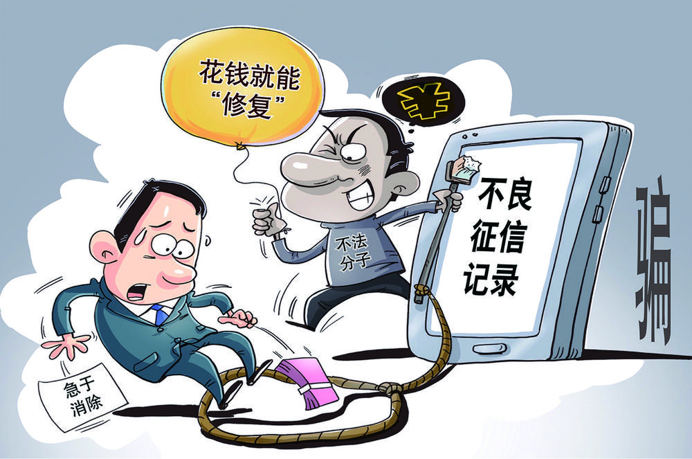 生活中,一旦出现征信不良记录,就可能产生房贷等贷款通不过、个人或企业信誉受损等影响。因此,部分信息主体急于消除不良征信记录,一些不法分子也趁机以“征信修复、洗白、铲单”“异议投诉咨询、代理”为名招揽生意,收取高额服务费。其实,所有声称合法的、商业的、收费的“征信修复”都是骗局,只有征信信息的报送机构才有修改权限。面对有关征信骗局,一方面,金融机构和征信机构应普及相关知识,让公众知晓合法的维权渠道和方式,了解“征信修复”骗局类型,避免上当受骗;另一方面,相关部门应加强协作,严格管控和清理网络上的各类“征信修复”虚假宣传广告,加大对不法分子的打击力度。