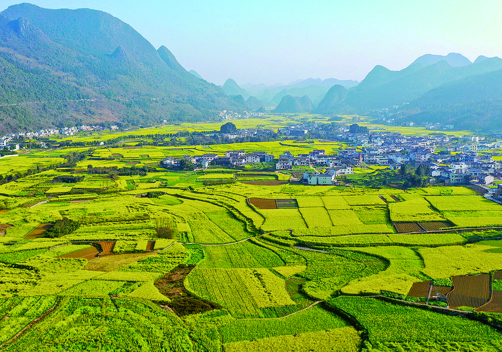 2月16日,贵州省黔西南州兴义市万峰林油菜花田风景如画。早春时节,当地春意盎然,千亩油菜花竞相绽放,山峰、村舍与田间盛开的油菜花相映成趣,吸引多地游客前来观景。刘朝富摄(中经视觉)