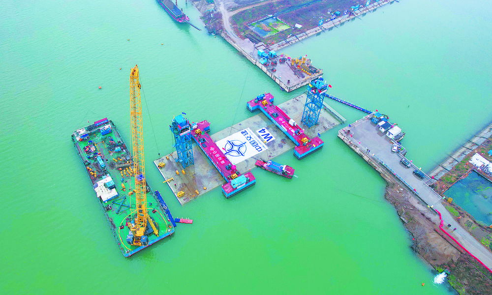 2月17日,由中交二航局参与投资建设的湖北省襄阳市东西轴线鱼梁洲过江隧道最后一节沉管安装完成。该过江隧道为国内整体规模最大的内河沉管隧道、华中地区首条内河沉管隧道,全长5.4公里,其建设为沉管隧道建设全产业链国产化发展提供了重要的技术借鉴和经验积累。许 豹摄 (中经视觉)