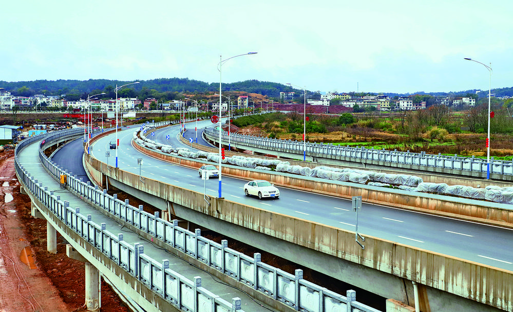 2月17日,车辆行驶在江西省赣州市庄稼大桥上。当日,该桥两厢连接线工程全线竣工。该工程位于赣州市南康区唐江镇庄稼大桥旁,为满足非机动车过江需求,在庄稼大桥起点和终点修建匝道连接原有桥面过江非机动车道,双向四段匝道总长1212米,将有效缓解通行压力。