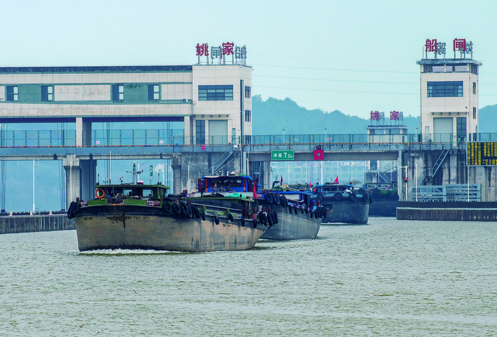 2月19日,浙江省钱塘江中上游衢江(金华段)姚家枢纽船闸里,一排千吨货船有序过闸,驶向衢江上游载货。自2018年钱塘江中上游航运开通以来,水路货物运输日益繁忙。2021年,姚家枢纽过闸船舶达8986艘,载货量668.72万吨,同比增长58%,连续三年快速增长。