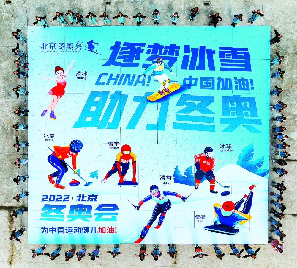 ⑥ 江苏省泗洪县瑶沟学校师生开展“逐梦冰雪助力冬奥”活动,为中国运动健儿加油。许昌亮摄(中经视觉)