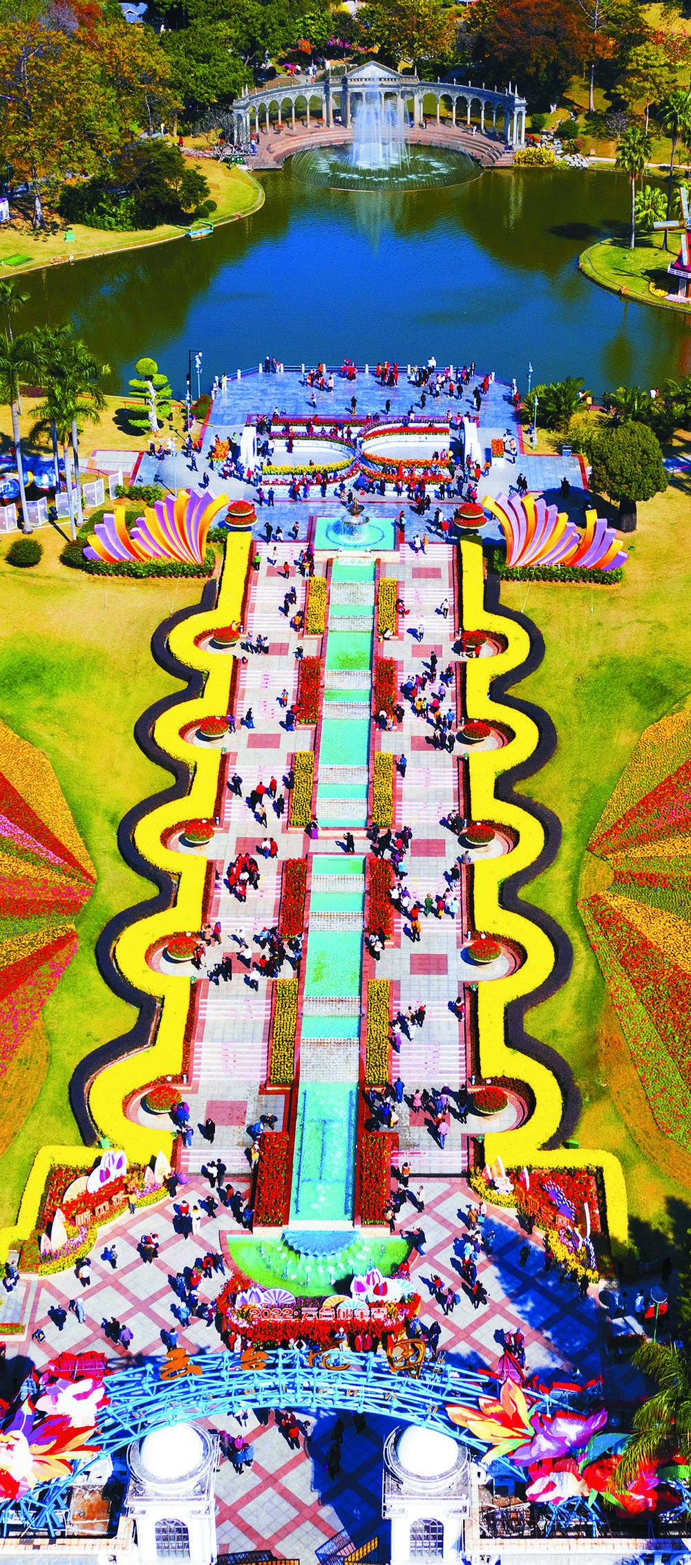 ② 广东省广州市白云山云台花园,市民在参观“听见花开·七彩云台”郁金香主题花展,快快乐乐迎新春。