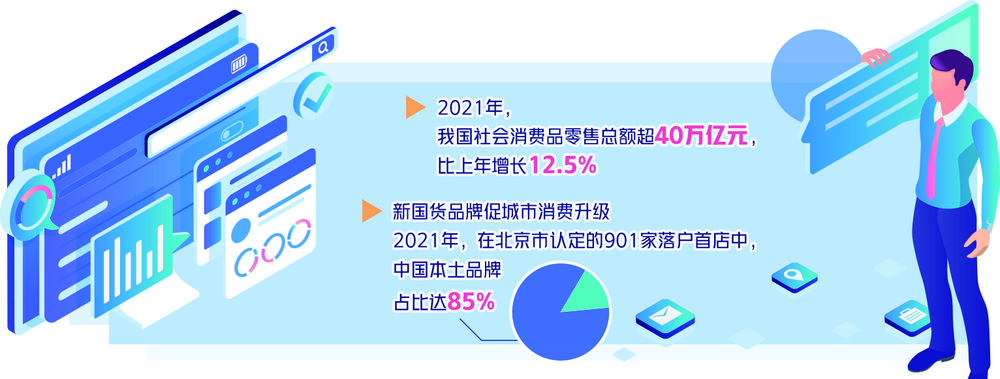 王永平认为,新国潮品牌呈现出向多领域扩展势头,在服饰、美妆、食品、新能源汽车等领域涌现出一批受追捧的新兴品牌,并成为购物中心创新品牌的新生力军。2021年,在北京市认定的901家落户首店中,中国本土品牌占比达85%,表明新国潮品牌正在成为城市消费升级的新推手。
