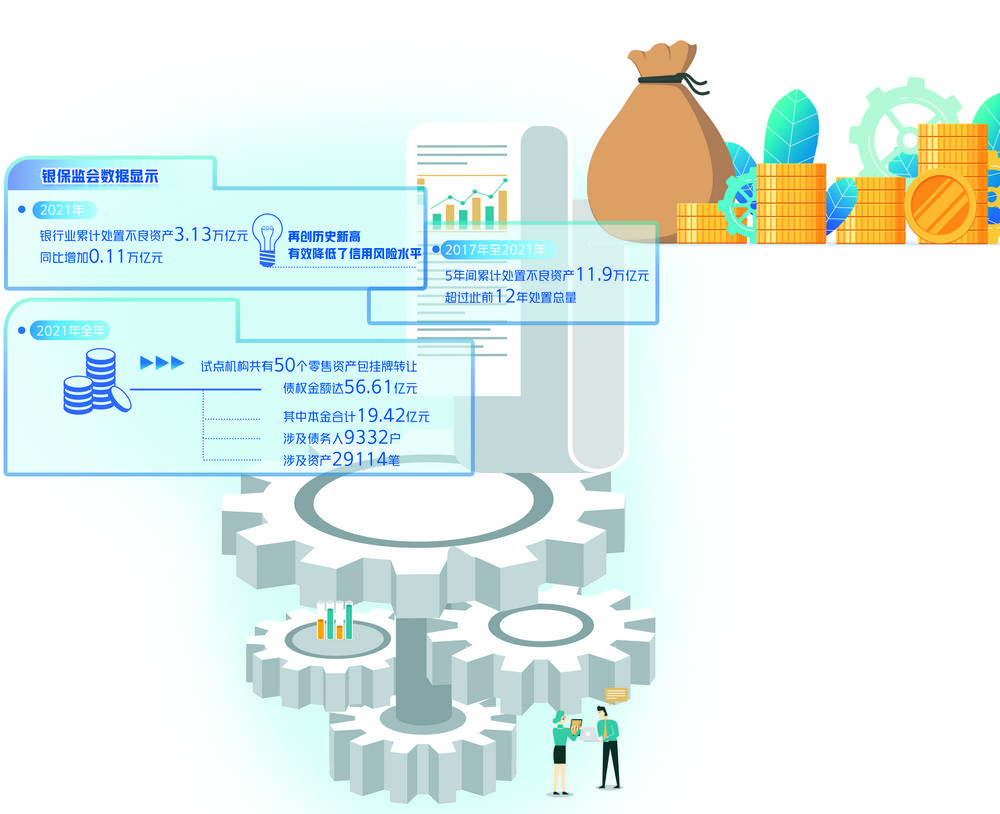 银保监会数据显示,2021年,银行业累计处置不良资产3.13万亿元,同比增加0.11万亿元,再创历史新高,有效降低了信用风险水平。2017年至2021年,5年间累计处置不良资产11.9万亿元,超过此前12年处置总量,为守住不发生系统性风险底线提供了重要保障。