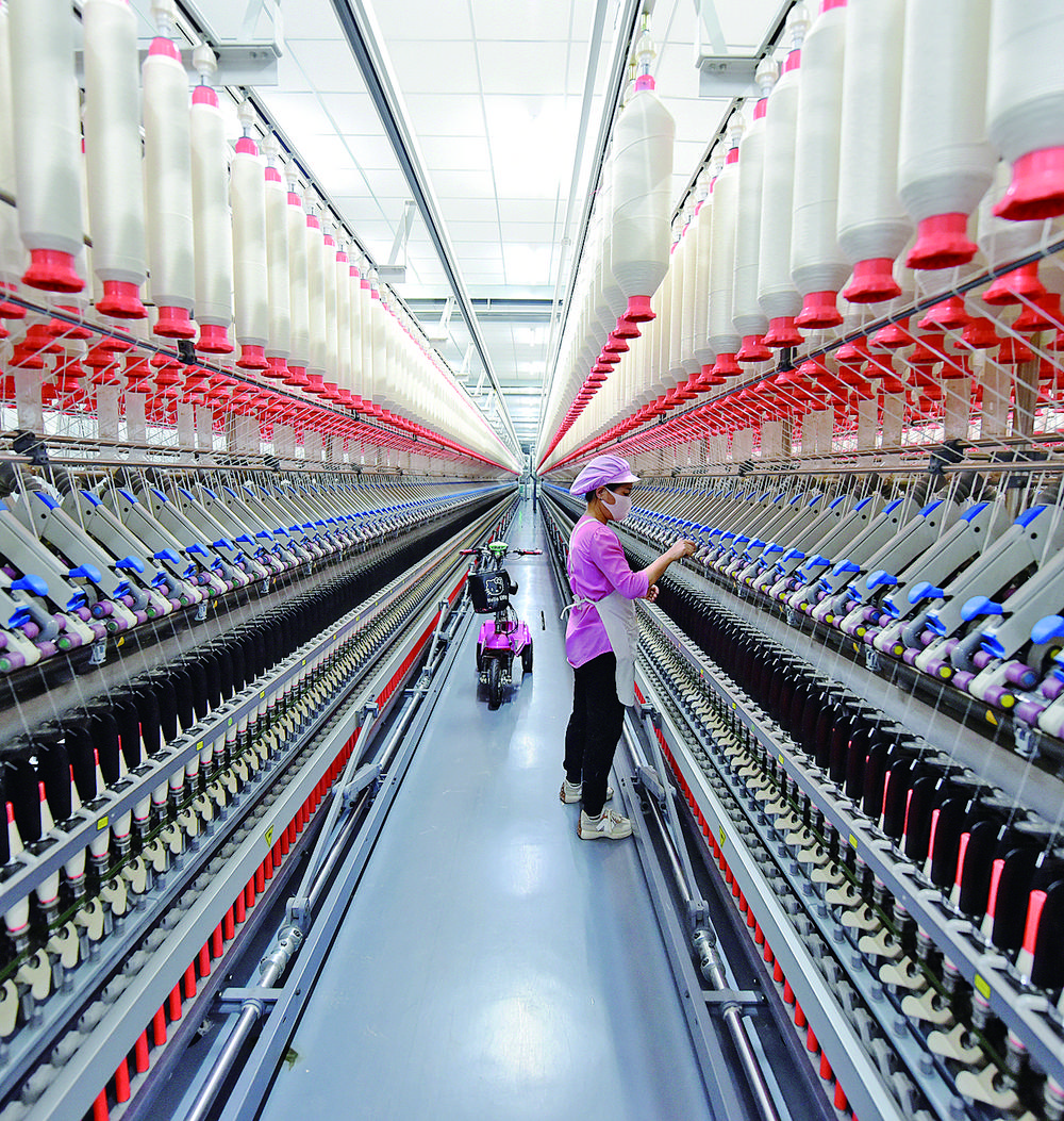 2月18日,山东临沂市郯城县李庄镇一家纺纱企业的工人在生产线上作业。近年来,郯城县大力推动产业智能化、绿色化、高端化,不断培育壮大新兴产业,推动传统产业转型升级,持续释放发展潜能。目前,该县科技创新型企业已有76家。房德华摄(中经视觉)