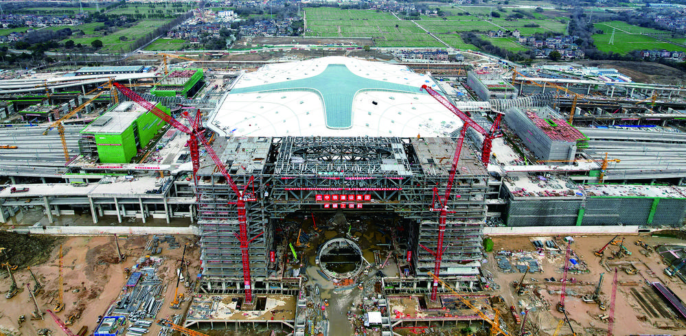 2月21日,从空中俯瞰建设中的杭州西站。作为2022年杭州亚运会重要交通保障配套工程,杭州西站枢纽建设已全面进入冲刺阶段,预计6月底将完成站房全部施工内容。