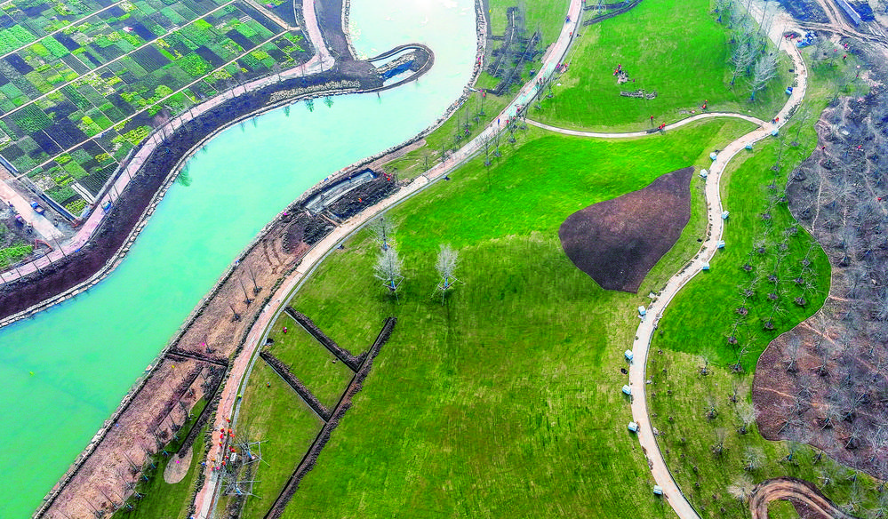 2月20日,湖北省襄阳市襄水源景区正在进行绿化等收尾工作。该工程在保留原有土丘密林地貌的基础上,对堤岸进行拓宽,修筑拦水坝,打造出生态陂塘风貌。同时,新建了生态停车场、生态厕所、襄源驿站等服务设施,为游客提供便利。杨 东摄(中经视觉)