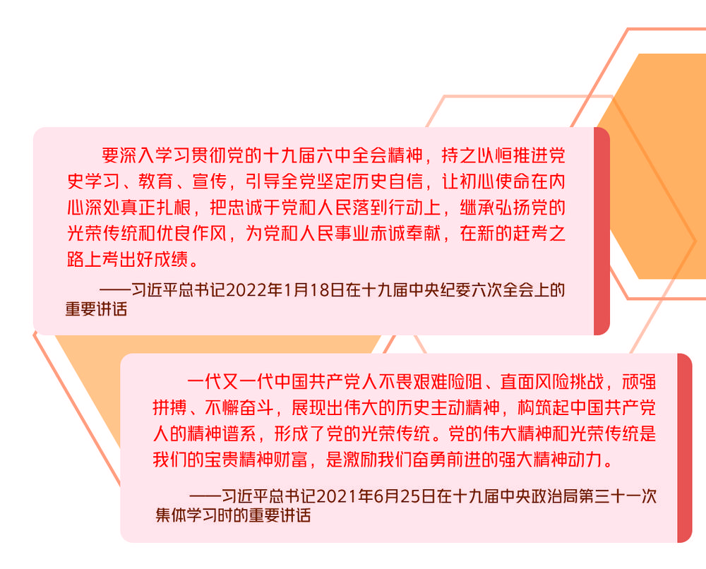 党的百年奋斗史表明,只有具有伟大精神的政党才能领导人民赢得伟大斗争、开创伟大事业。现在,中国共产党正团结带领14亿多中国人民,信心百倍地向着全面建成社会主义现代化强国的宏伟目标迈进。今年下半年,中国共产党将召开第二十次全国代表大会。我们要更加紧密地团结在以习近平同志为核心的党中央周围,继续发扬伟大的历史主动精神,扎实推进党和国家各项工作,着力保持平稳健康的经济环境、国泰民安的社会环境、风清气正的政治环境,以实际行动迎接党的二十大胜利召开。