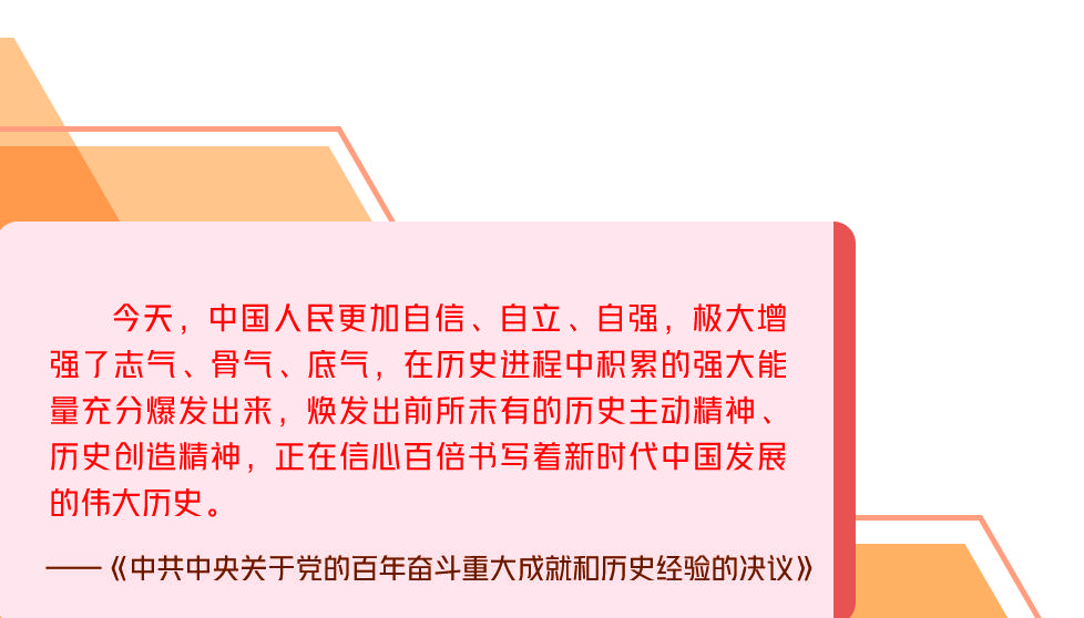总结百年历史进程得出的重要结论。在一百年不平凡的奋斗历程中,中国共产党团结带领全国各族人民,浴血奋战、百折不挠,自力更生、发愤图强,解放思想、锐意进取,自信自强、守正创新,交出了一份令世界惊叹的优异答卷,引领近代以来久经磨难的中华民族迎来了从站起来、富起来到强起来的伟大飞跃。这样的伟大历史进程饱含着无数苦难与辉煌。“历史的道路,不全是坦平的,有时走到艰难险阻的境界,这是全靠雄健的精神才能够冲过去的。”习近平总书记引用李大钊同志这一重要论断阐明包括历史主动精神在内的精神力量对一个政党的极端重要性,并得出深刻历史结论:“一代又一代中国共产党人不畏艰难险阻、直面风险挑战,顽强拼搏、不懈奋斗,展现出伟大的历史主动精神,构筑起中国共产党人的精神谱系,形成了党的光荣传统。”