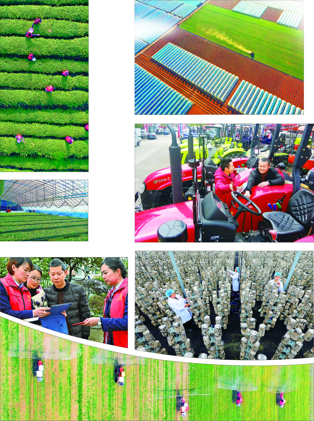 ⑥ 2月22日,安徽省安庆市宜秀区五横乡五横社区食用菌大棚生产基地,农民在采摘桑枝木耳。江 胜摄(中经视觉)