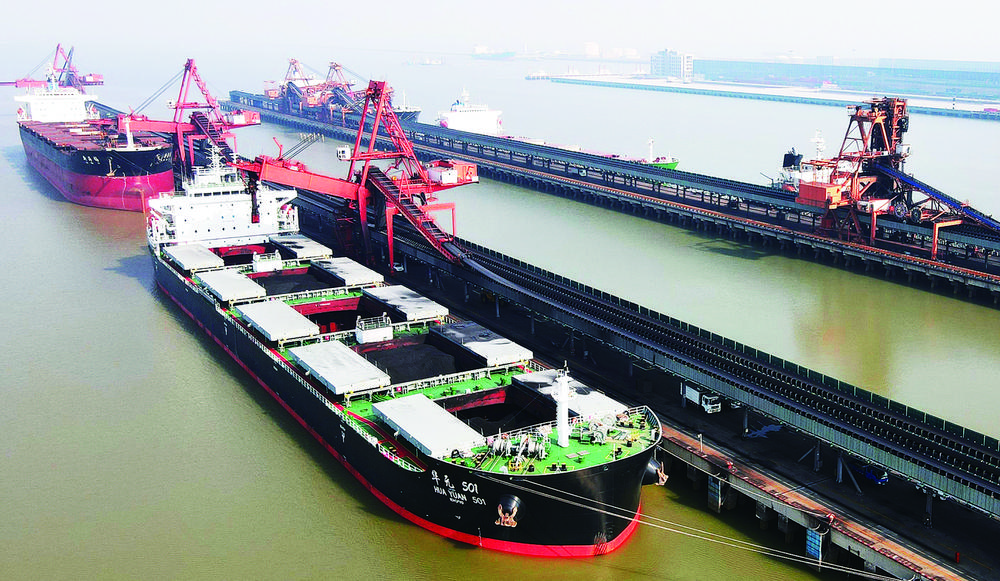 2月24日,船舶在河北沧州黄骅港装运电煤。黄骅港是我国电煤南运的重要通道,今年以来,为确保能源运输畅通,黄骅港克服天气多变等不利因素,强化科学调度,截至24日,已装船完成691艘次,向南方各大火电厂发送电煤3161万余吨。傅新春摄(中经视觉)