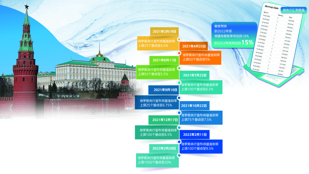 其次,通货膨胀难以抑制。娜比乌林娜表示,几乎所有公司都面临着生产和物流链的中断,与此同时,内需依然存在,今明两年的通货膨胀率将高于先前的估计,目前难以给出具体的预测数据。国际评级机构惠誉日前预测,到2022年底,俄通货膨胀率将达到18%,到2023年底将达到15%。