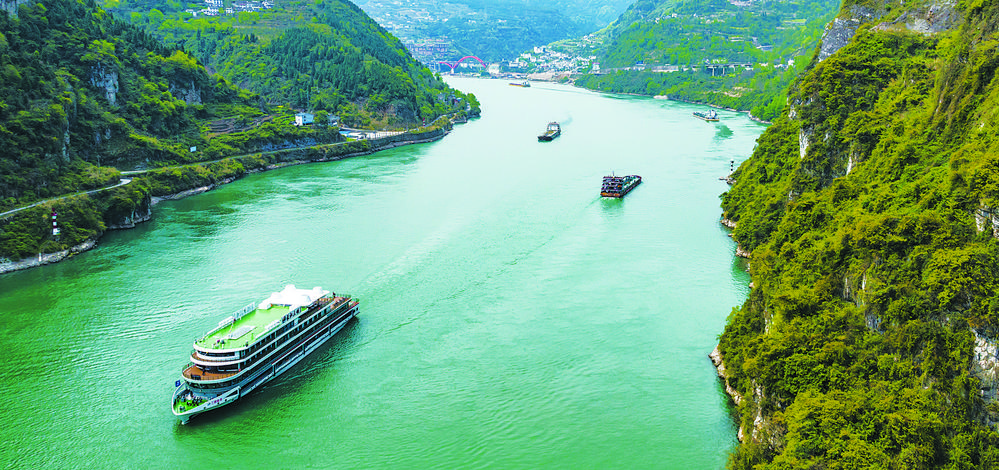 3月29日,”长江三峡1”号纯电动游轮在三峡库区湖北宜昌茅坪港码头举行首航仪式,正式投入三峡旅游线路运营。“长江三峡1”号纯电动游轮总投资1.5亿元,船长100米,总宽16.3米,型深4米,配备7500千瓦时船用动力电池,是全球载电量最大的新能源游轮。郑家裕摄(中经视觉)