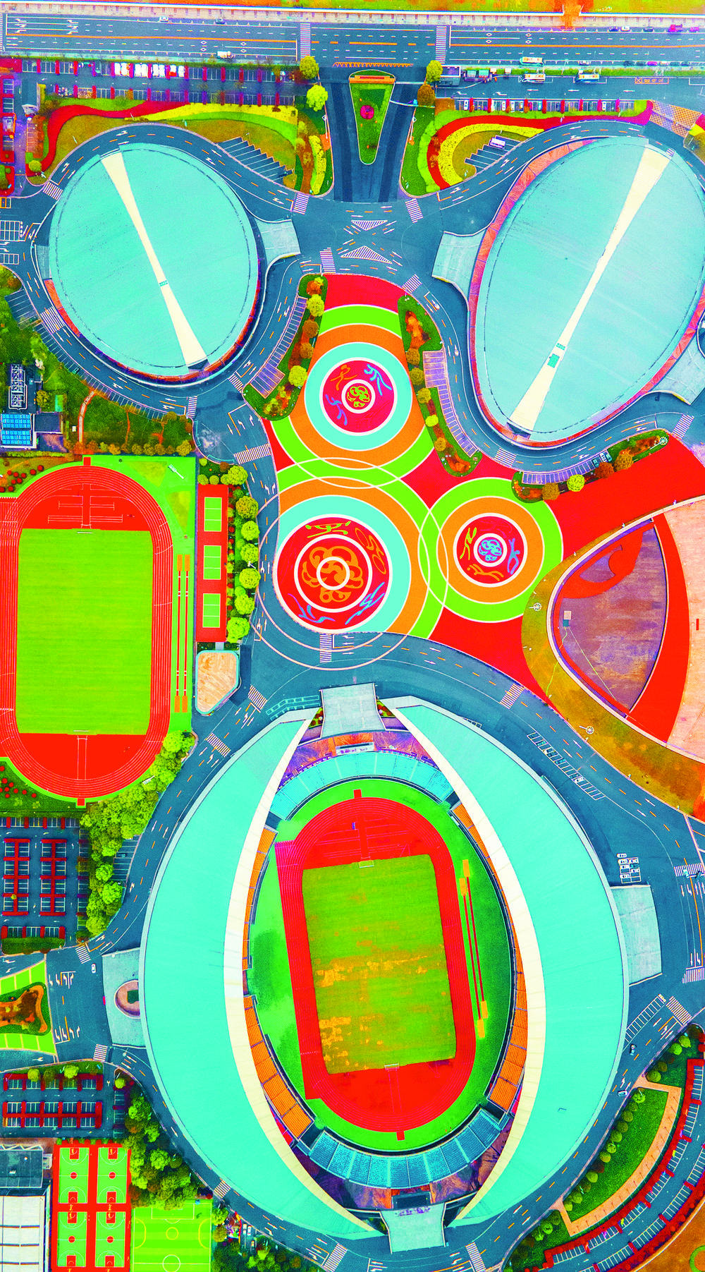 各竞赛场馆在设计上别出心裁、独具匠心,建设中巧夺天工、精益求精,成为了各城市的地标性建筑。位于钱塘江畔的杭州奥体中心体育场,外表由28片大花瓣和27片小花瓣组成,酷似一朵绽放的莲花。与它遥相呼应的是一双张开的银白色金属翅膀——杭州奥体中心游泳馆,这里作为世界上最大的两馆连接体非线性造型场馆,无论在白天夜晚都有着一流的颜值。而绍兴柯桥羊山攀岩中心场馆造型犹如一枚被部分镂空的“蚕茧”,造型精巧别致,让人过目不忘……