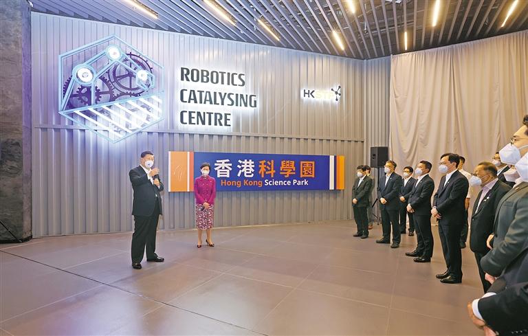 香港科学园是香港最大的科技研发及企业孵化基地,目前拥有1100多家企业和1.7万余名创科从业者,吸引了众多国内外知名科研机构和高校进驻设立实验室。在科学园展厅,习近平听取香港创新科技发展、深港创新科技发展互动、香港科学园发展等情况介绍,观看香港代表性创科企业展示。习近平指出,近年来,在中央支持下,香港发挥自身优势,在基础研究、人才培养、创科产业发展等方面都取得了令人瞩目的成绩。特别行政区政府要把握时代发展大势,把支持创新科技发展放在更加突出的位置,进一步发挥好科技创新的支撑和引领作用。