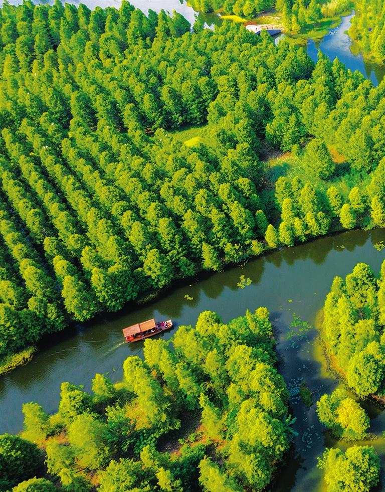 7月2日,江苏省宿迁市宿豫区新庄镇杉荷园里百亩水杉林郁郁葱葱。暑期来临,杉荷园迎来最佳观赏期,吸引大量游客前来游玩。王甫君摄(中经视觉)