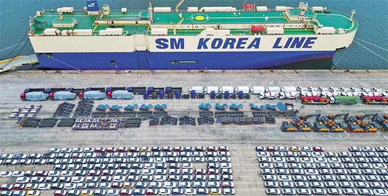 7月4日,大批出口商品车在山东港口烟台港集结等待装船。上半年,山东港口烟台港积极拓展国际滚装航线网络布局和多样化物流模式,各类商品车出口8.2万辆,同比增长45.94%。