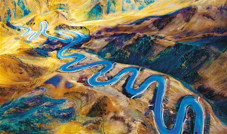 ▶盘龙古道犹如巨龙般逶迤在崇山峻岭间。它是新疆喀什地区瓦恰乡通往山外最近的一条公路,被村民称之为致富路。李展朋摄(中经视觉)