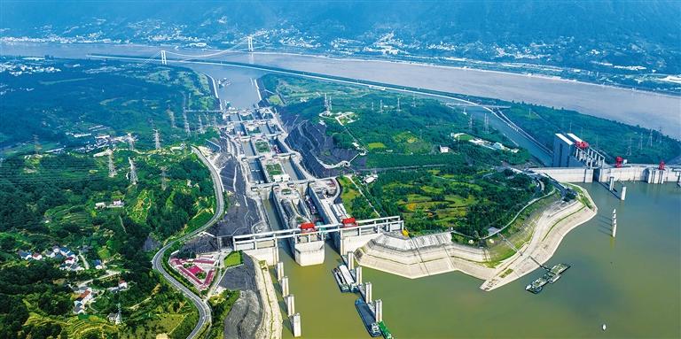 7月8日,船舶有序通过三峡五级船闸。来自长江三峡通航管理局的统计数据显示:今年1月至6月,三峡枢纽通过量7698万吨,同比上升5.7%,创三峡枢纽半年通过量的历史新高。