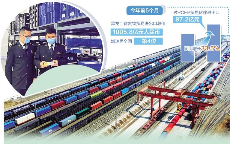 今年前5个月,黑龙江省对RCEP贸易伙伴进出口97.2亿元,增长33.5%。哈尔滨海关副关长高文告诉记者,自RCEP实施以来,哈尔滨海关4个月共签发RCEP原产地证书214份,签证金额达6630.4万元,企业出口货物预计可享受进口国关税减让331.5万元,RCEP项下享惠进口货值106.9万元。
