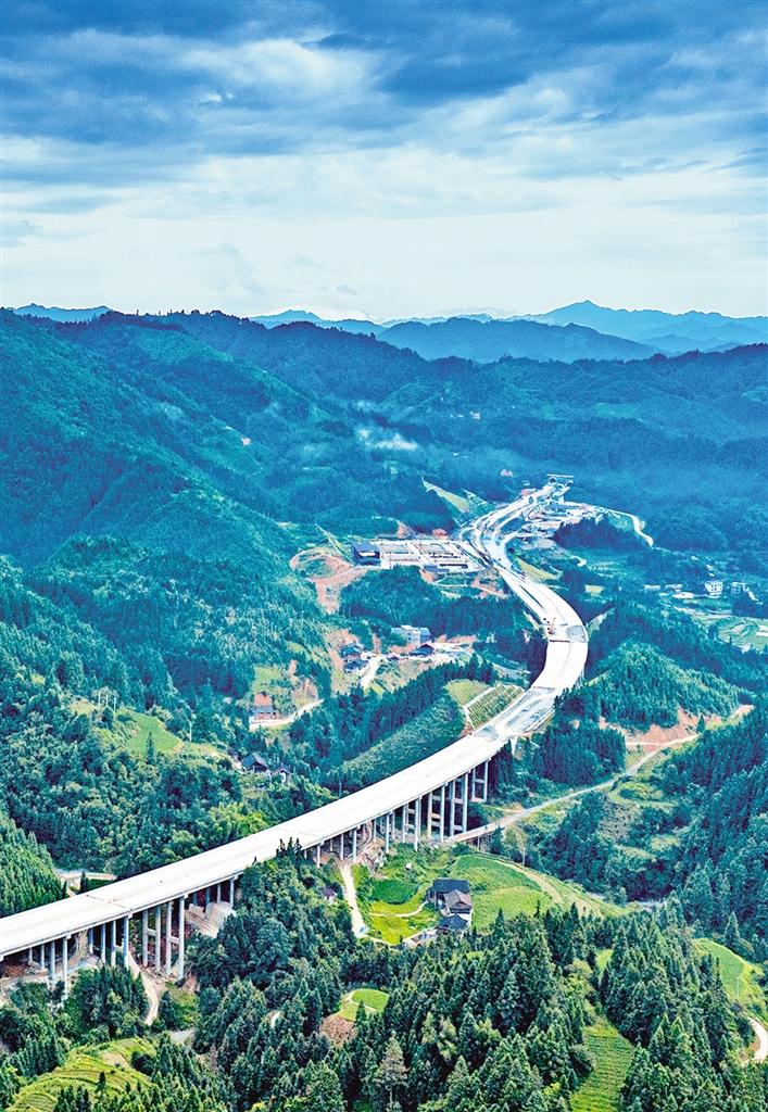 7月11日,贵州省黔东南苗族侗族自治州榕江县平永镇,雷榕高速在山间穿梭。近年来,当地在贵广高速、厦蓉高速等交通要道汇集的基础上,加大农村基础设施建设投入,围绕“建设好、管理好、养护好、运营好”总体目标,实施农村公路改造提升工程,助力百姓走上致富路。潘邵平摄(中经视觉)