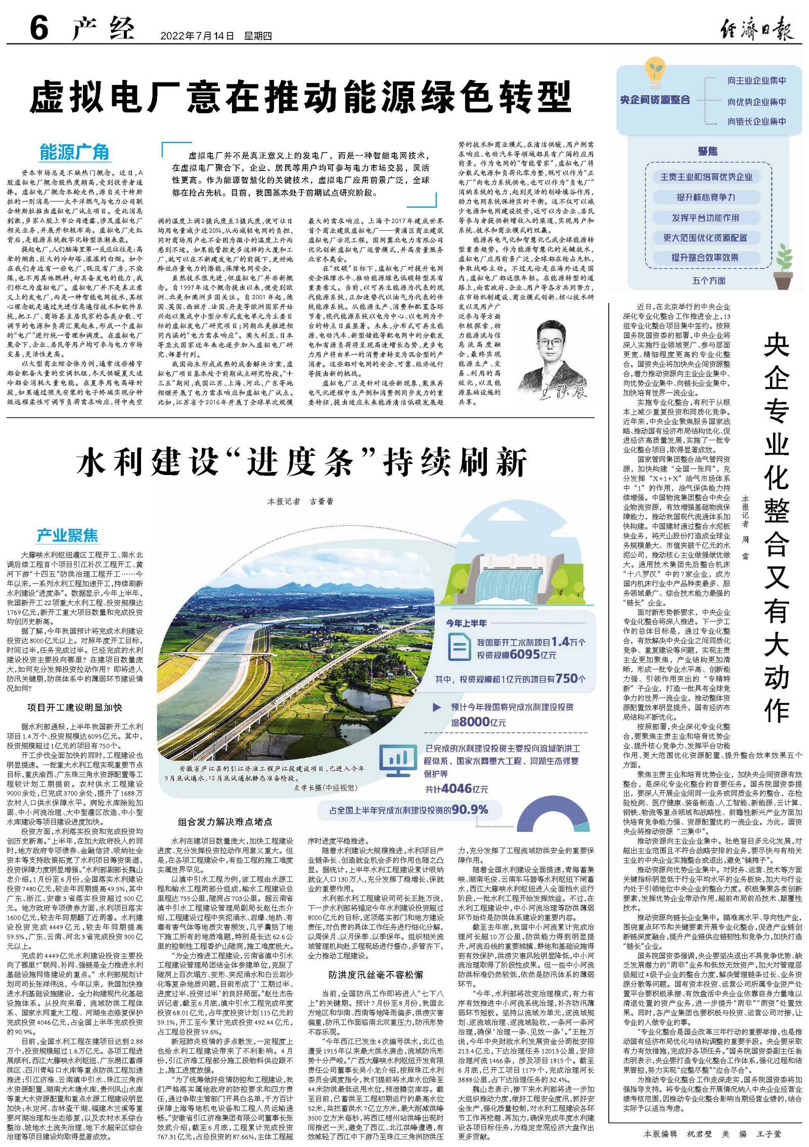 实施专业化整合,有利于从根本上减少重复投资和同质化竞争。近年来,中央企业聚焦服务国家战略、推动国有经济布局结构优化、促进经济高质量发展,实施了一批专业化整合项目,取得显著成效。