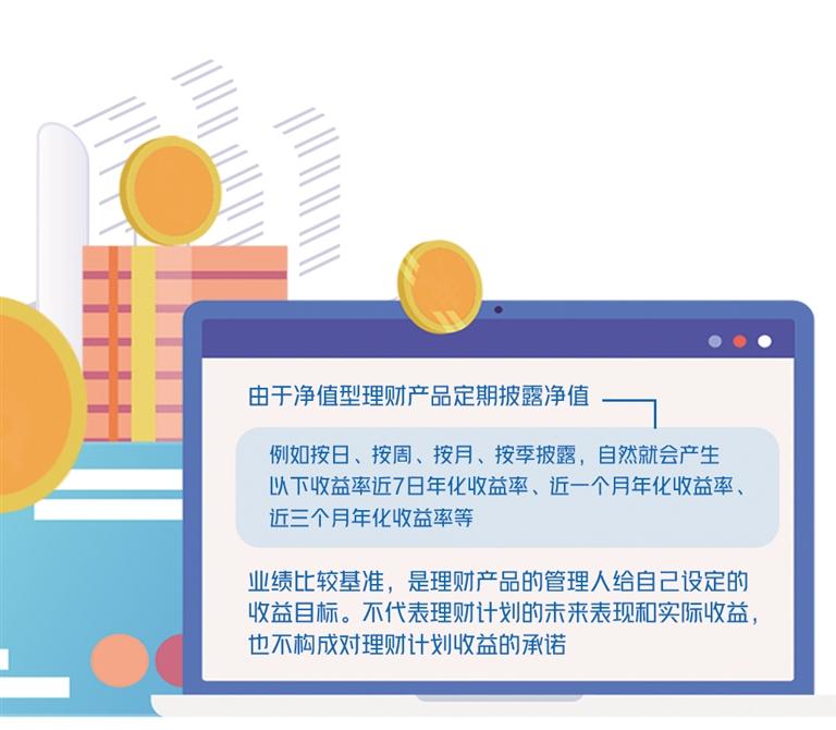 多位业内人士提醒,“资管新规”正式实施后,投资者必须仔细观察、分析收益率类型,切忌单看收益率数字。具体来看,目前行业内采用较多的是“业绩比较基准”。所谓业绩比较基准,简单来说,是理财产品的管理人给自己设定的收益目标。“它不代表理财计划的未来表现和实际收益,也不构成对理财计划收益的承诺。”杭银理财相关负责人表示,业绩比较基准是理财产品的管理人基于理财计划的收益风险特征、投资策略、过往经验等因素,对理财计划的业绩设定的投资目标,它通常有两种展现形式,一是单一值,如业绩比较基准4.25%;二是区间值,如业绩比较基准3.5%至4.5%。