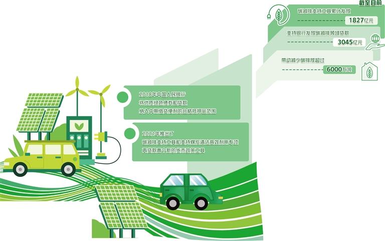 为促进绿色转型,人民银行于2018年将优质绿色债券和贷款纳入中期借贷便利的合格抵押品范围,并在去年推出了碳减排支持工具和支持煤炭清洁高效利用专项再贷款两个新的货币政策工具,支持符合条件的金融机构为具有显著碳减排效应的项目提供低成本融资。最新数据显示,截至目前,碳减排支持工具累计发放1827亿元,支持银行发放碳减排领域贷款3045亿元,带动减少碳排放超过6000万吨。