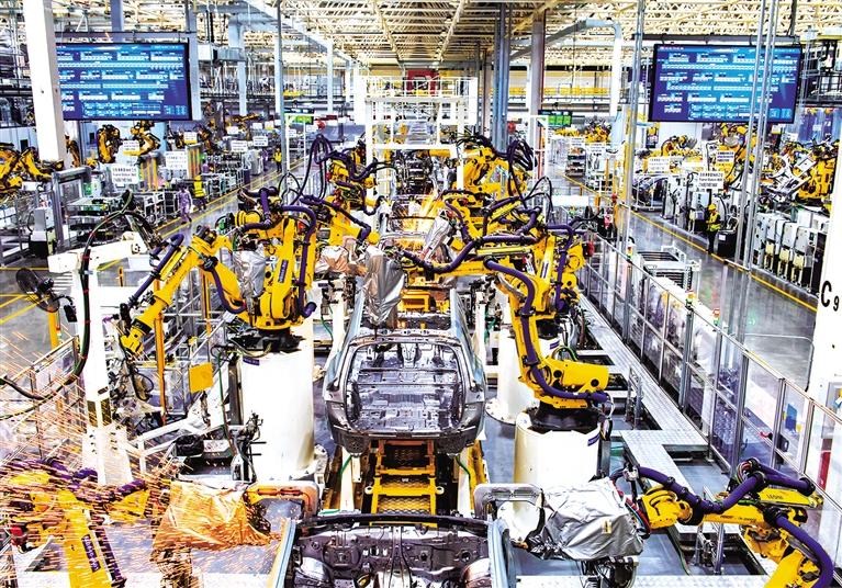 7月19日,位于重庆市沙坪坝区青凤高科产业园区的赛力斯凤凰智慧工厂,自动化生产线正高速运转。该工厂按照智能数字化柔性汽车整车工厂标准建设,产品为中高端新能源智能电动汽车。近年来,沙坪坝区推动制造业高端化、智能化、绿色化,大力发展新能源智能网联汽车、高端装备等产业,推动经济实现高质量发展。孙凯芳摄(中经视觉)