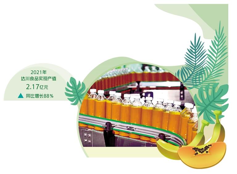 转型升级为企业注入强大发展动能,竞争力不断增强。2021年达川食品实现产值2.17亿元,同比增长88%。