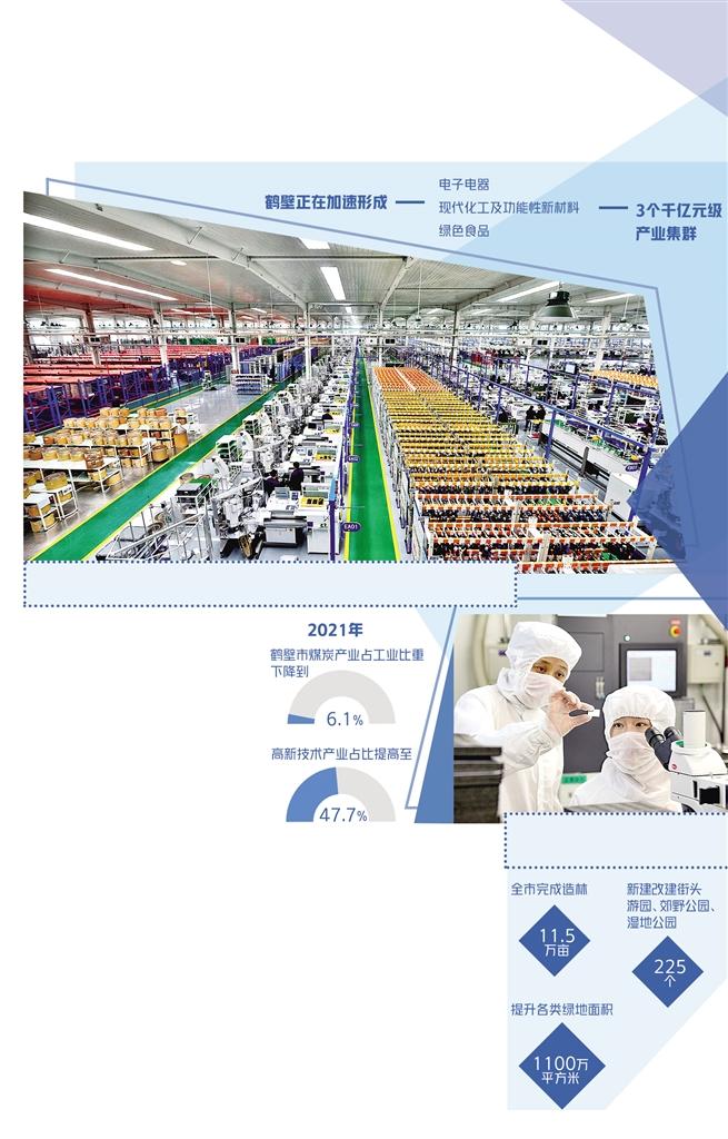 煤炭产业占工业比重下降到6.1%,高新技术产业占工业比重提高到47.7%,第三产业占生产总值比重提高到35.6%……这样一组数据有力证明了鹤壁产业转型在“新”与“旧”之间的成功转换。
