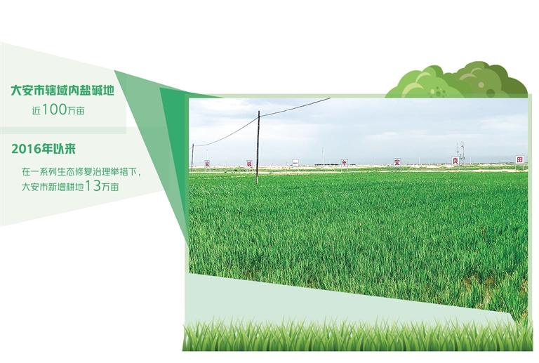 2016年以来,在一系列生态修复治理举措下,大安市新增耕地13万亩,曾经的不毛之地正一步步走向草茂粮丰。大安市自然资源局土地整理中心主任王长志表示,大安将认真对比参赛单位和科研团队的试验效果,深入总结盐碱地生态修复先进技术和科技成果,为盐碱地土壤改良提供有益经验,为吉林省“千亿斤粮食”工程提供有力支撑。