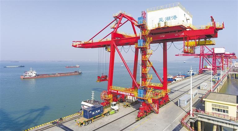 一月二十日,安徽省芜湖港朱家桥港区国际集装箱码头上的大型龙门吊正在装卸作业。为保障物流稳定通畅,春节期间,芜湖港一线码头工人将坚守岗位,确保货物顺利进出。肖本祥摄(中经视觉)