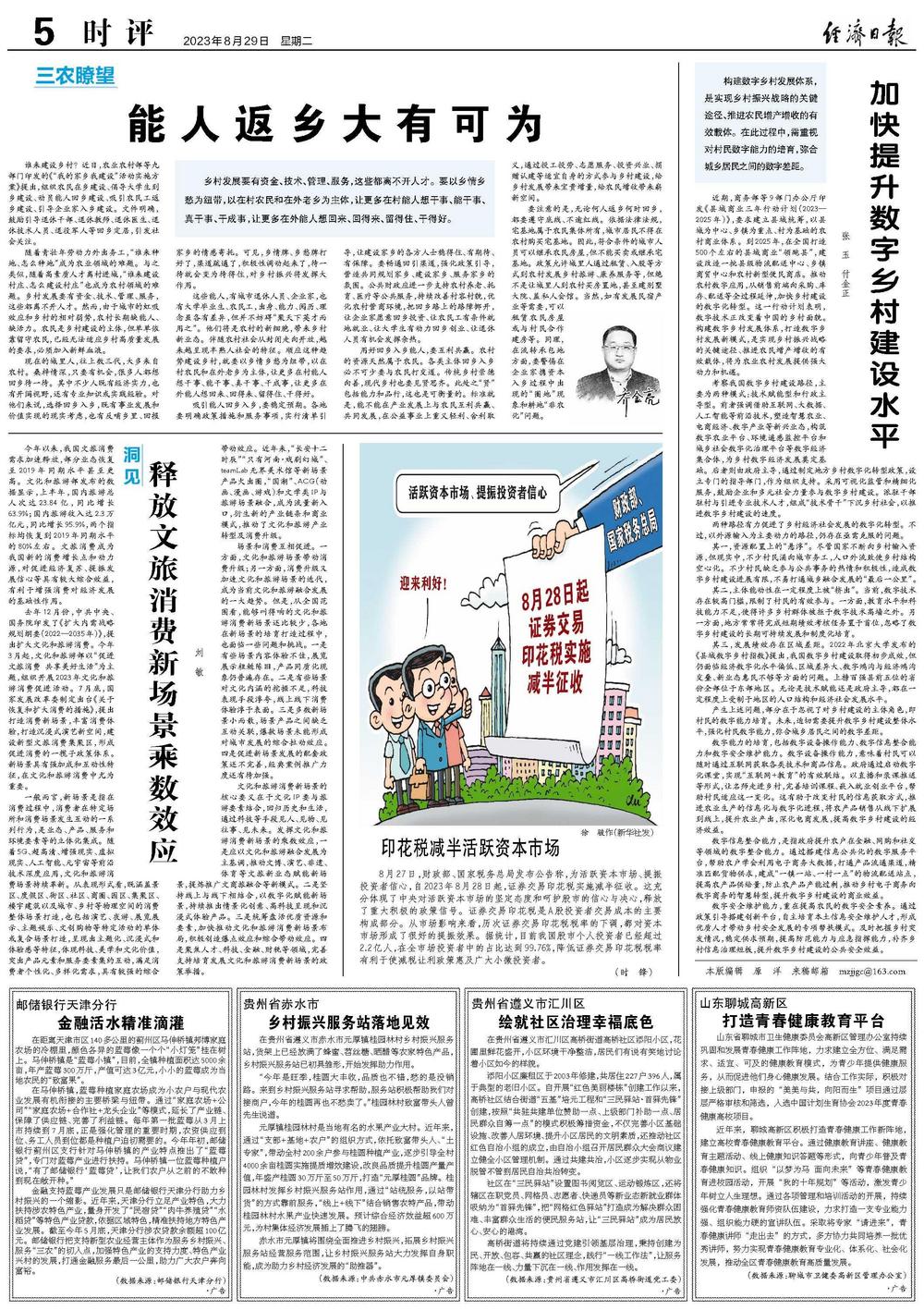 近期,商务部等9部门办公厅印发《县域商业三年行动计划(2023—2025年)》,要求建立县域统筹,以县城为中心、乡镇为重点、村为基础的农村商业体系。到2025年,在全国打造500个左右的县域商业“领跑县”,建设改造一批县级物流配送中心、乡镇商贸中心和农村新型便民商店。推动农村数字应用,从销售前端向采购、库存、配送等全过程延伸,加快乡村建设的数字化转型。这一行动计划表明,数字技术正改变着中国的乡村面貌。构建数字乡村发展体系,打造数字乡村发展新模式,是实现乡村振兴战略的关键途径、推进农民增产增收的有效载体,将为农业农村发展提供强大动力和机遇。