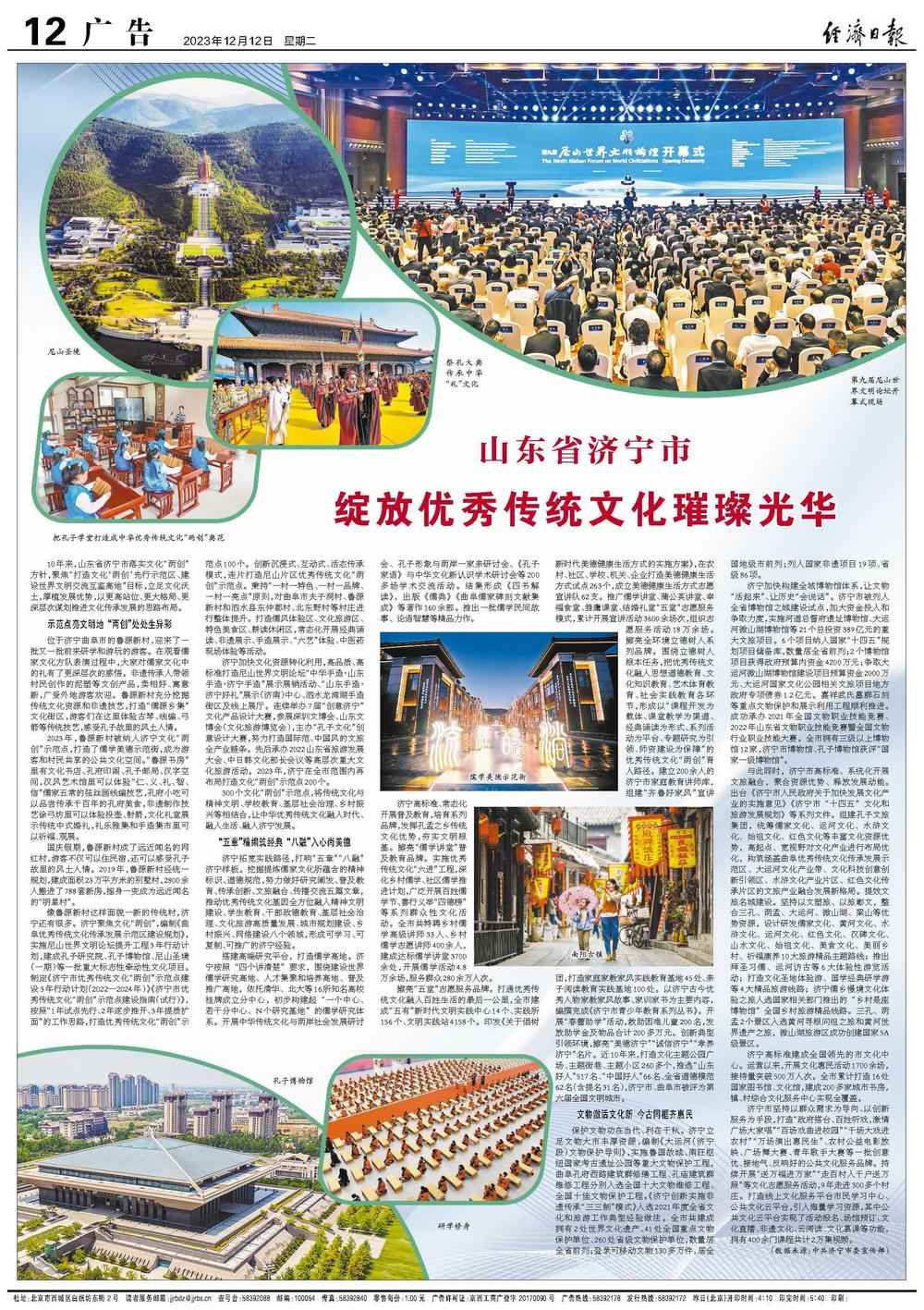 300个文化“两创”示范点,将传统文化与精神文明、学校教育、基层社会治理、乡村振兴等相结合,让中华优秀传统文化融入时代、融入生活、融入济宁发展。