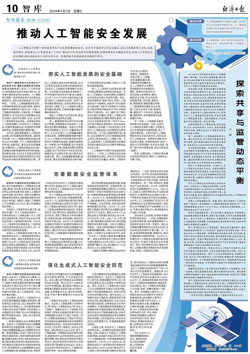 我国加快推动人工智能发展,需形成政府、企业、社会组织和个人合力,在协同数据和算法治理、保障生成式人工智能安全等方面实现重点突破。