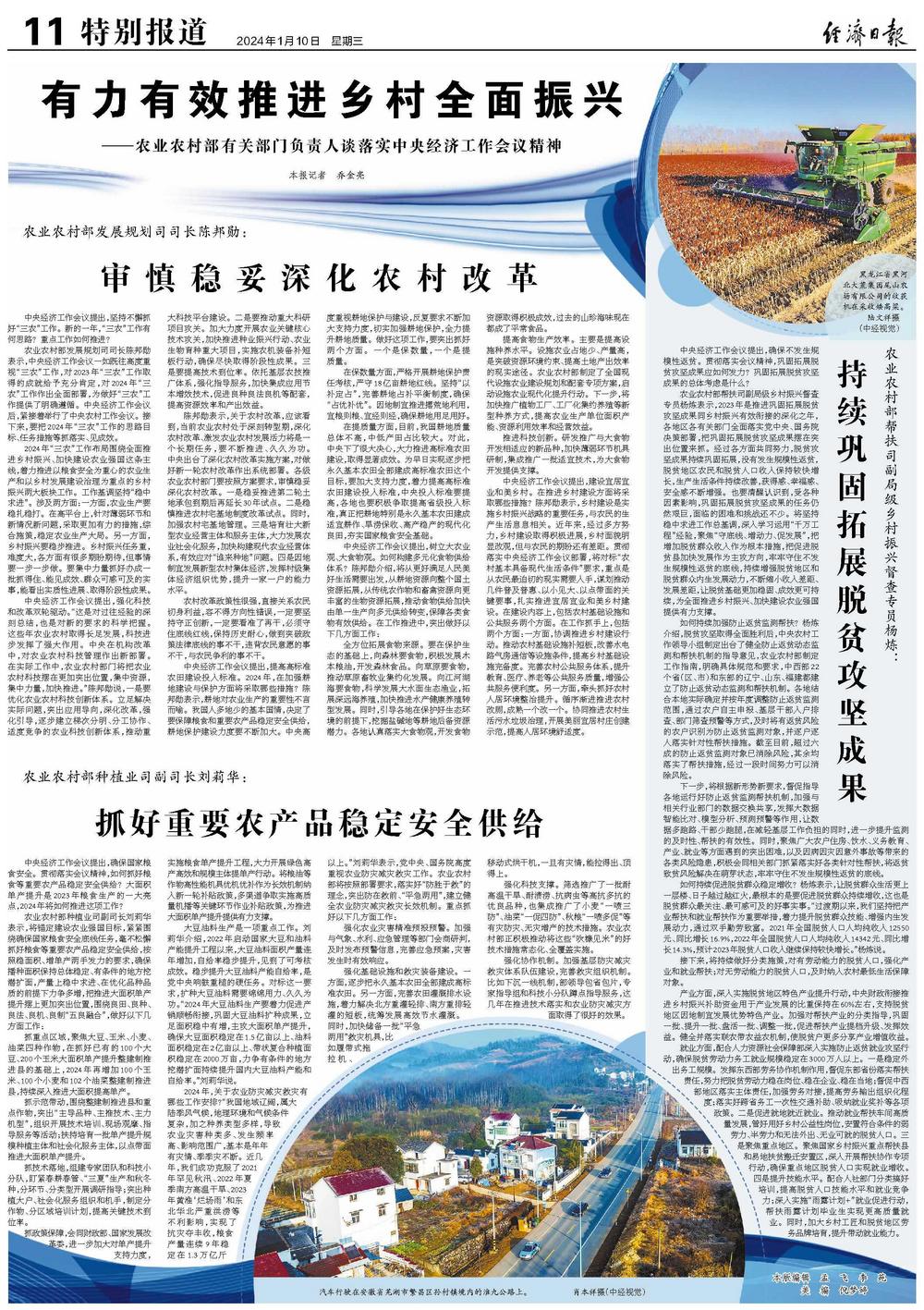 中央经济工作会议提出,坚持不懈抓好“三农”工作。新的一年,“三农”工作有何思路?重点工作如何推进?