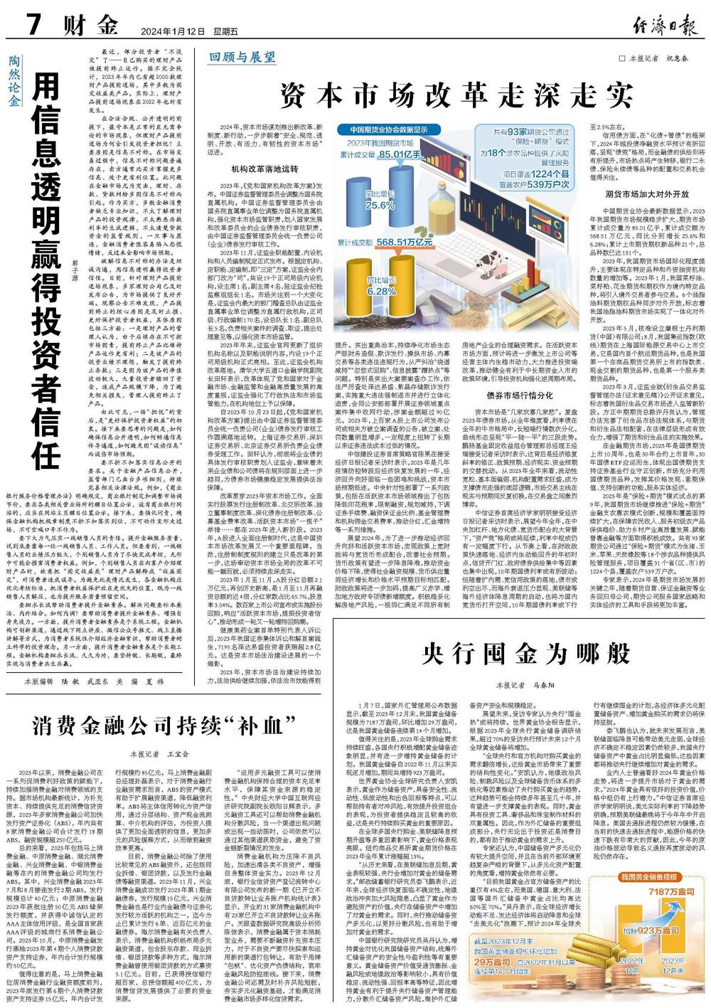 改革贯穿2023年资本市场工作。全面实行股票发行注册制改革、北交所改革、独立董事制度改革、深化债券注册制改革、公募基金费率改革、活跃资本市场“一揽子”举措……都在2023年进入新阶段。2023年,A股进入全面注册制时代,这是中国资本市场改革发展又一个重要里程碑。当然,注册制制度规则的建立只是改革的第一步,这场牵动资本市场全局的改革不可能一蹴而就,必须持续走深走实。
