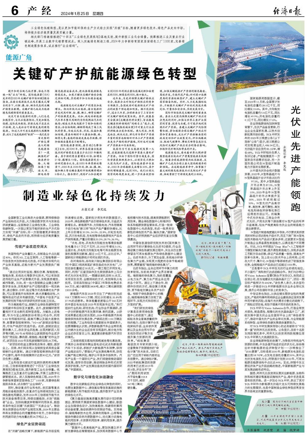 全国新型工业化推进大会强调,要持续推动产业结构优化升级,大力推动数字技术与实体经济深度融合,全面推动工业绿色发展。工业绿色低碳转型,一方面以更加节能环保的生产方式助力实现“双碳”目标;另一方面随着更多绿色技术、绿色产品走向市场,将持续为经济高质量发展贡献力量。