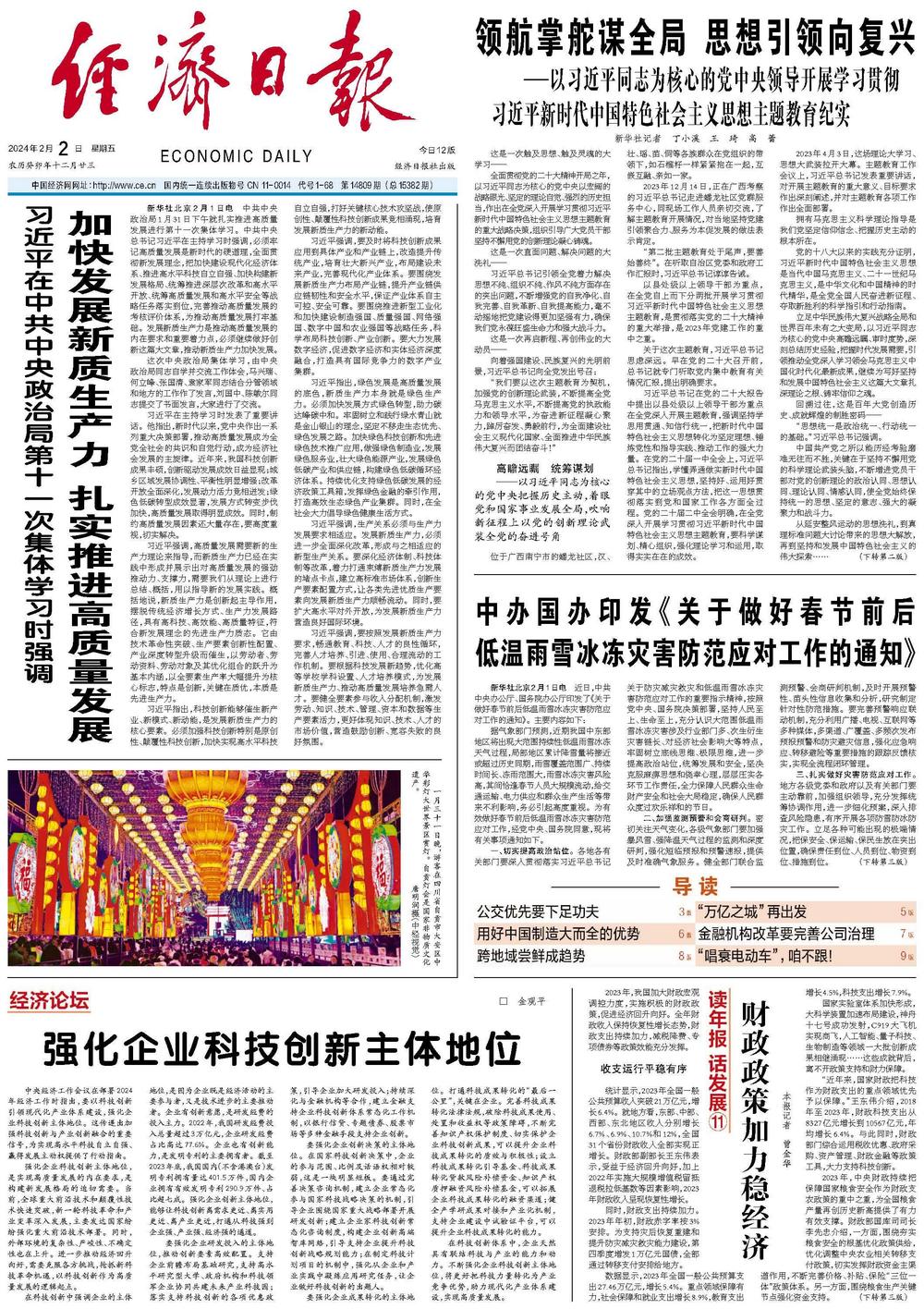 中央经济工作会议在部署2024年经济工作时指出,要以科技创新引领现代化产业体系建设,强化企业科技创新主体地位。这传递出加强科技创新与产业创新融合的重要信号,为实现高水平科技自立自强、赢得发展主动权提供了行动指南。