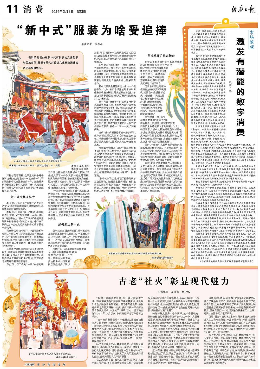 数据显示,去年“双11”期间,淘宝服饰卖出了超73万条马面裙。今年1月以来,淘宝平台上“新中式”“宋锦”的搜索量环比分别增长近6倍和近20倍。今年春节期间,各种含有龙元素的新中式拜年服也十分火爆。